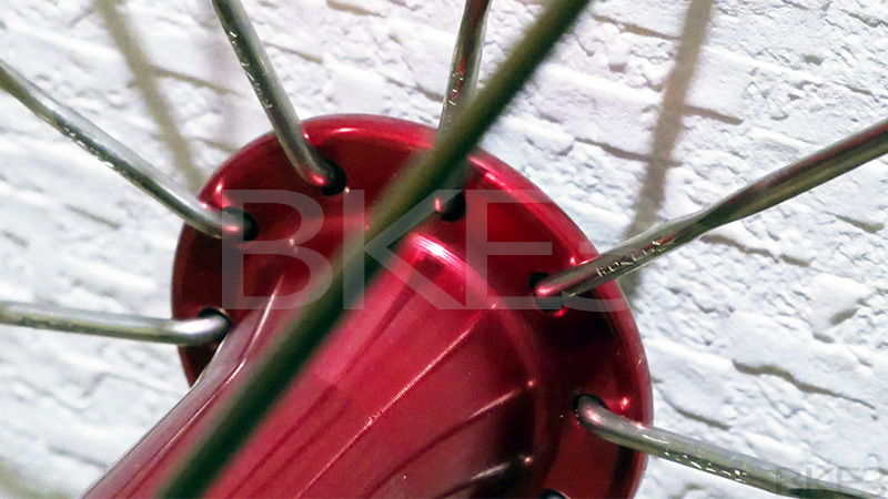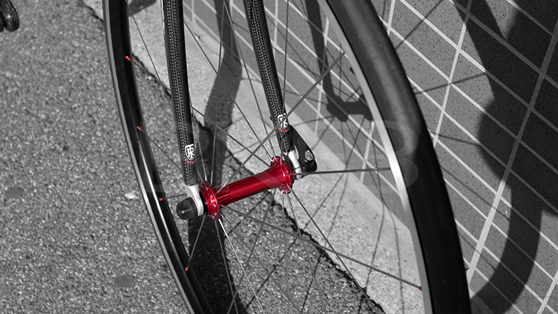 ハブのカラーはオプションで変更できます。標準のシルバー以外に、レッド、ゴールド、ブルーが選べます。(ニップル同色)